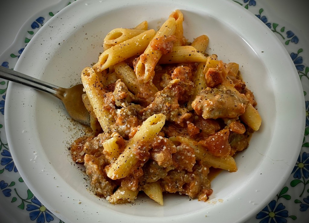 After dough has sat in the fridge, transfer it to *lightly floured work surface. Roll it into a 12-inch circle. Transfer dough to a 9-inch tart or pie pan and press dough up onto the sides. Prick the dough all over with a fork, making sure not to go all the way through. Preheat the oven to 425 degrees. Bake at 425 for 15 – 17 minutes, making sure to watch and prick with a fork as needed if the dough is rising up. Remove the pan from the oven and lower the temperature to 375 degrees.