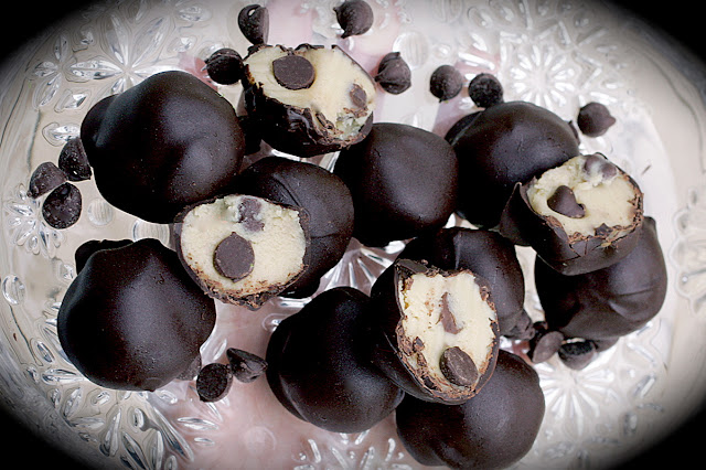 Line a couple freezer safe containers with foil. Use a cookie dough scoop and your hands to form the mixture into 3/4-inch balls. Place each ball into the foil lined containers. Cover containers and place in freezer for several hours, or overnight.